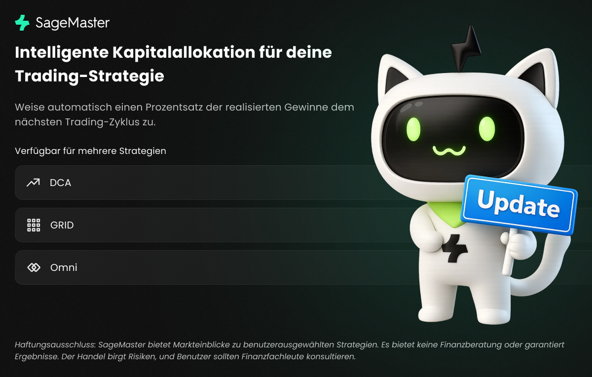 💡 Haftungsausschluss: Sagemaster, eine Softwareplattform, stellt Marktinformationen zu von Nutzern ausgewählten Strategien bereit. Sie bietet keine Finanzberatung und garantiert keine Ergebnisse. Trading ist mit Risiken verbunden, und Nutzer sollten Finanzfachleute konsultieren.