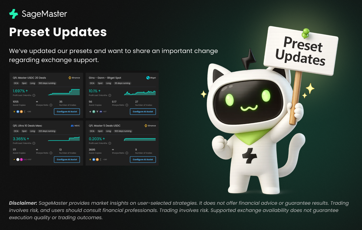 We’ve updated our presets and want to share an important change regarding exchange support.
