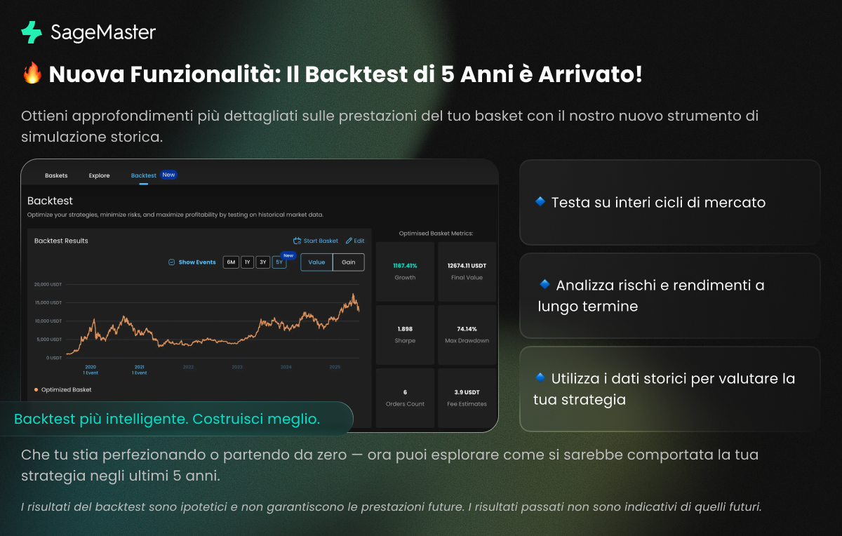 Il tuo AI Basket ora include 5 anni completi di dati di mercato—bull run, correzioni, volatilità e tutto ciò che c’è in mezzo.