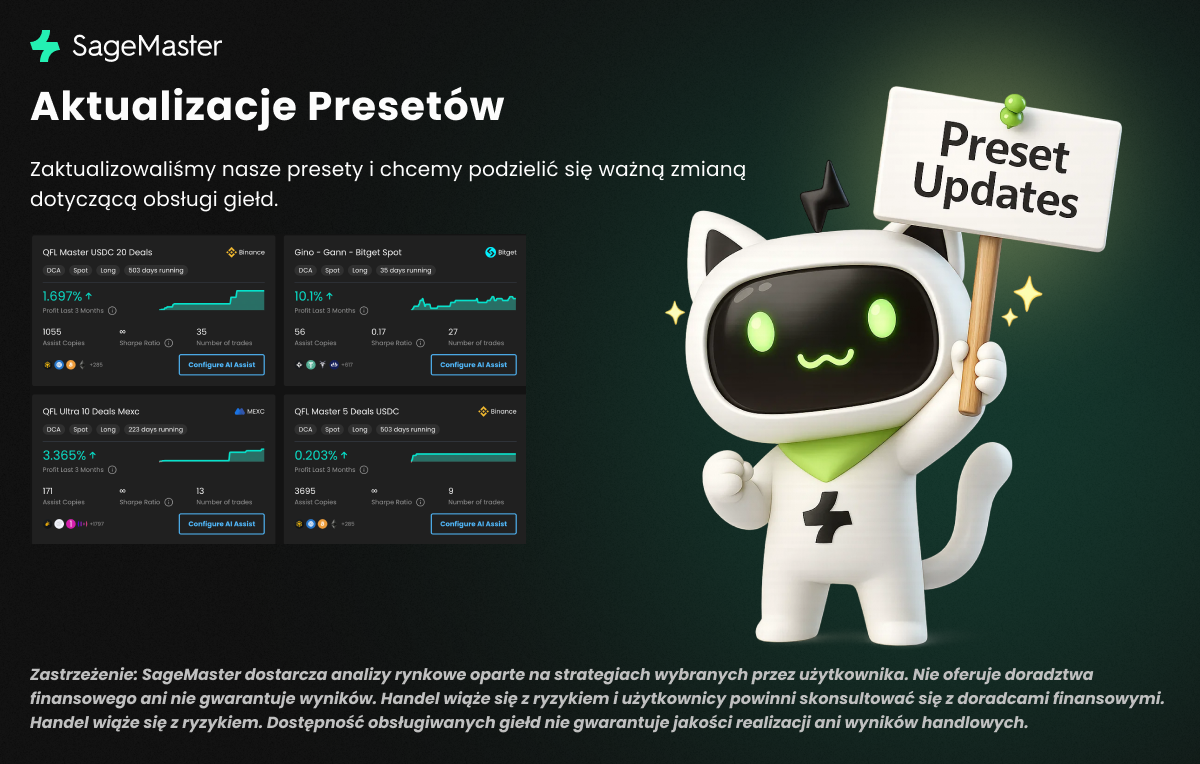 Zaktualizowaliśmy nasze presety i chcemy podzielić się ważną zmianą dotyczącą obsługi giełd.
